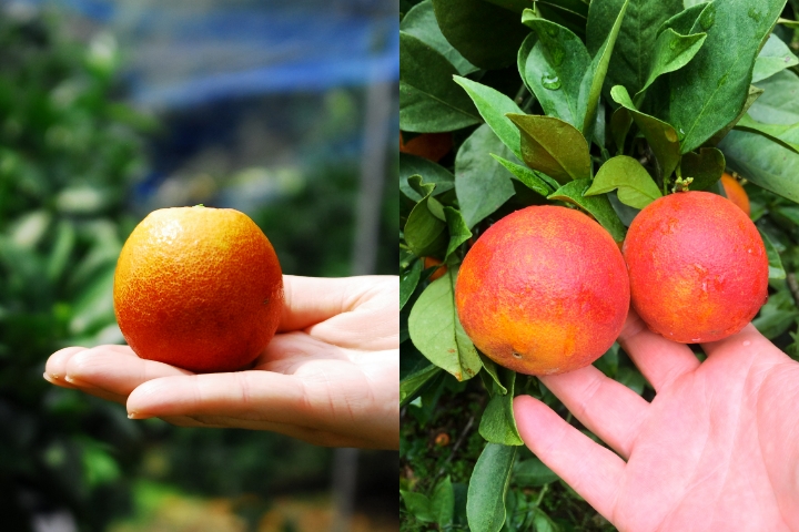 そしてもう一つがモロ種。皮は厚めでコクのある甘さ、濃厚なみかんの香りとグレープフルーツを思わせる爽やかな香りが感じられ、赤みが強くジュースにすると色鮮やかです。